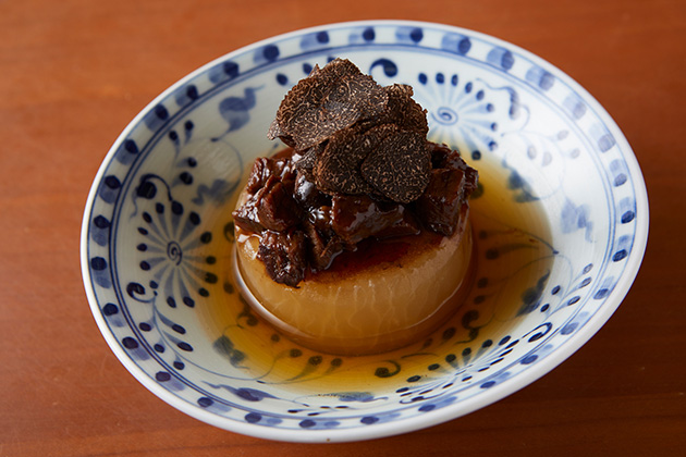 料理 フレンチと和食を経験したシェフ島田典明が、自身で毎日6時間かけてとる鴨のコンソメと、可能な限り手造りにこだわったおでんダネの数々。全14席という小さな規模だからこそできる、当店でしか味わうことのできないおでんを、ワインと合わせて是非お楽しみください。 ワイン 品質管理の行き届いた国内40社以上のインポーターから、世界各国の銘醸ワインを、厳選してオンリストしています。デリケートな鴨のスープとおでんを考慮して、良く熟成した飲み頃のワインを取り揃えております。安心して、おでんとワインのマリアージュをお楽しみください。 シーン 冬の屋台の食べ物としてのイメージが強いおでんですが、旬の食材を取り入れ、1年を通じて楽しめるコースに仕立てている為、ご接待の席では、特にご好評いただいております。又、奥様に食べさせたいNo.1の声があがっているおでん「トマト」。記念日や、ちょっと贅沢なディナーに最適です。そして、気の置けない仲間とのひと時を、カウンターを貸切で、思う存分お楽しみいただくのもおすすめです。(貸切料金は頂戴しておりません。) ご予約 |